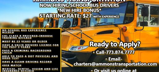 Office: (773) 874-7777 Fax: (773) 874-3329 To Book Charters/Trips & General inquiries:: Charters@ammonstransportation.com